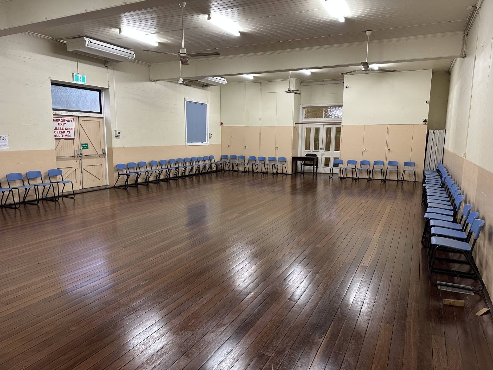 The hall is the hub of the Mackay Masonic Centre, a spacious event area ideal for corporate functions, weddings, formal dinners and seminars. This space has a grand entrance from Wood Street, allowing easy access to parking and the Mackay City. It caters to over 200 people and includes ample tables and chairs available for use, with convenient access to power outlets throughout the space.